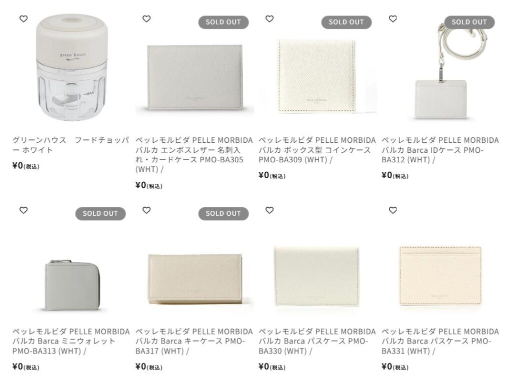 優待サイトがオープンしたときに掲載されていた洋服や靴や食品で、すでに売切れになりサイトからなくなっているものもあります!