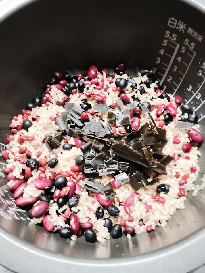 黒豆や金時豆、あずきと玄米を炊飯器で一緒に炊きます!