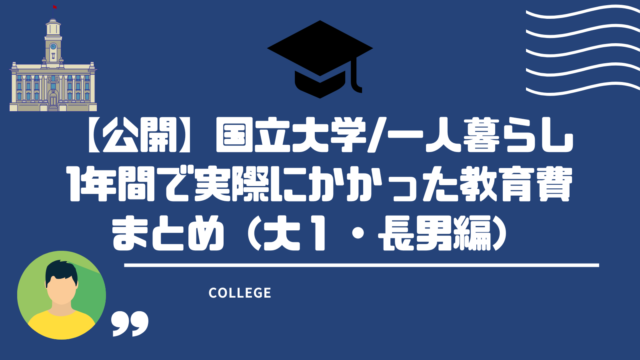 【公開】国立大学/一人暮らし 1年間で実際にかかった教育費まとめ(大1・長男編)