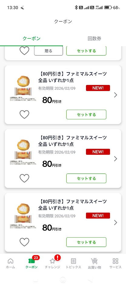 - 【2026年2月3日追記】ファミマルスイーツ80円引きクーポン利用でドーナツなどを購入!