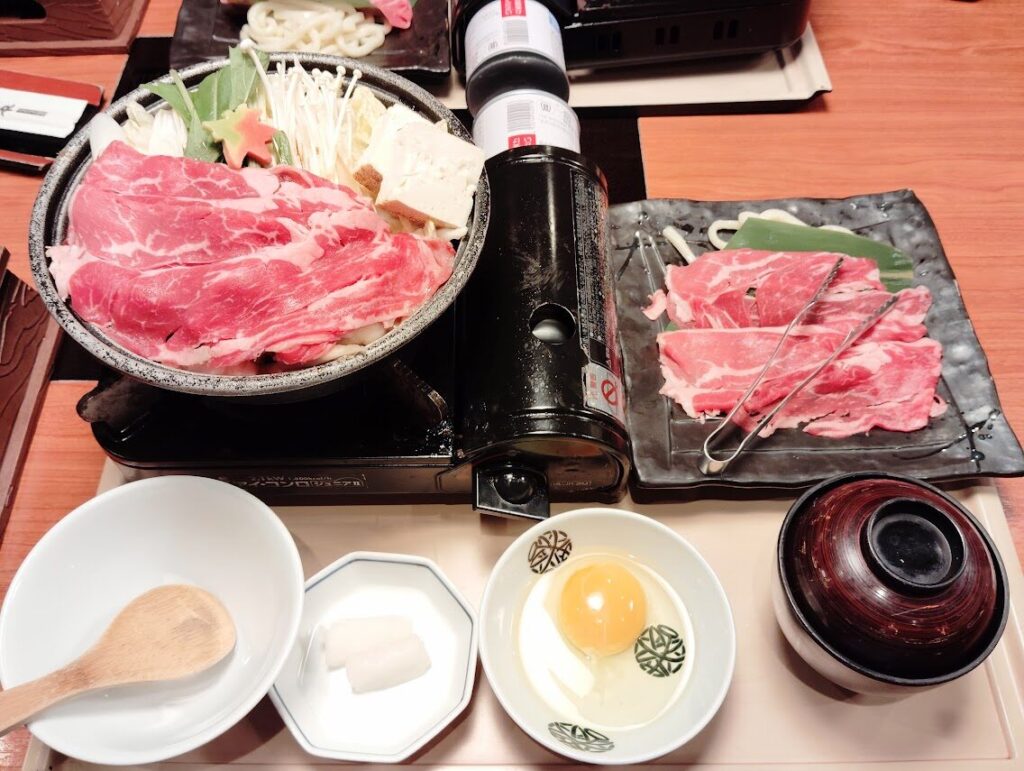 今回はパパと二人だったので「食べ放題以外の、普通のメニューにしよう~!」ということになり、「すき焼き定食」をいただきました!