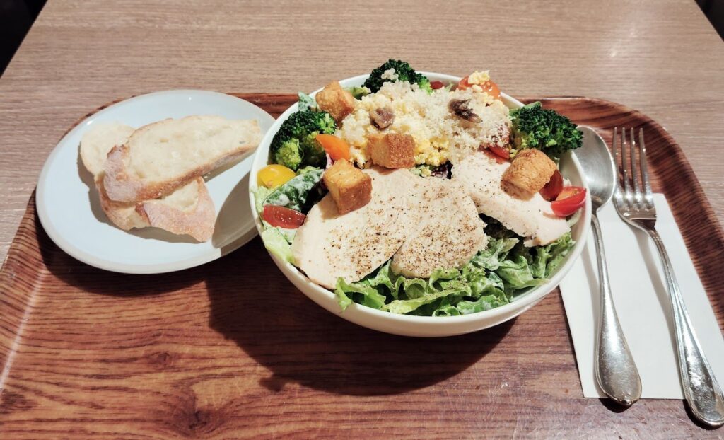 エチカ表参道内にある「Mr.FARMER(ミスターファーマー)」でプロテインシーザーサラダとバゲットいただいてきました!