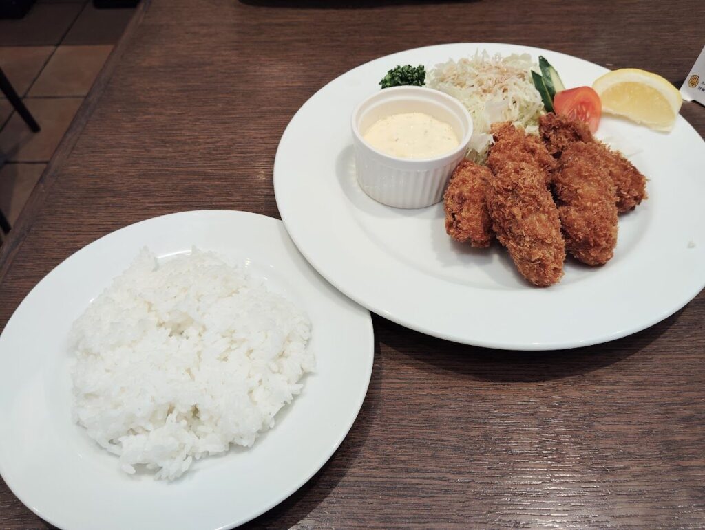 カキフライのランチをいただきました。(5個は多かったので2個はテイクアウトしました)