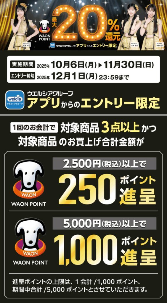10月のウエルシアデーで参戦した「キュキュットスタンプラリー」の、800WAON POINT付与されました(^^)