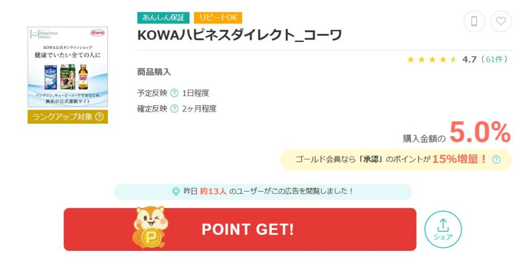 ポイントサイトのモッピー経由で購入したので5%のポイントがもらえる予定です。