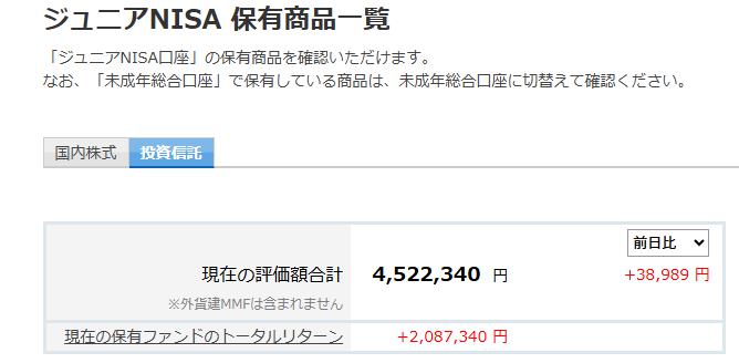連日の株価高で、ついにジュニアNISAの利益が200万円を突破しました!