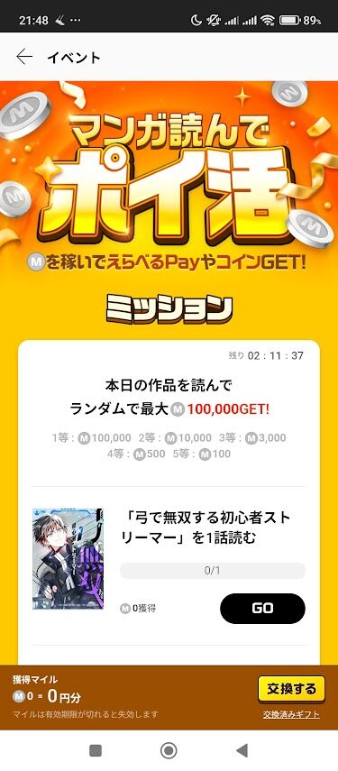 ⑤プライチ引き換えてからdマイレージをレシート応募