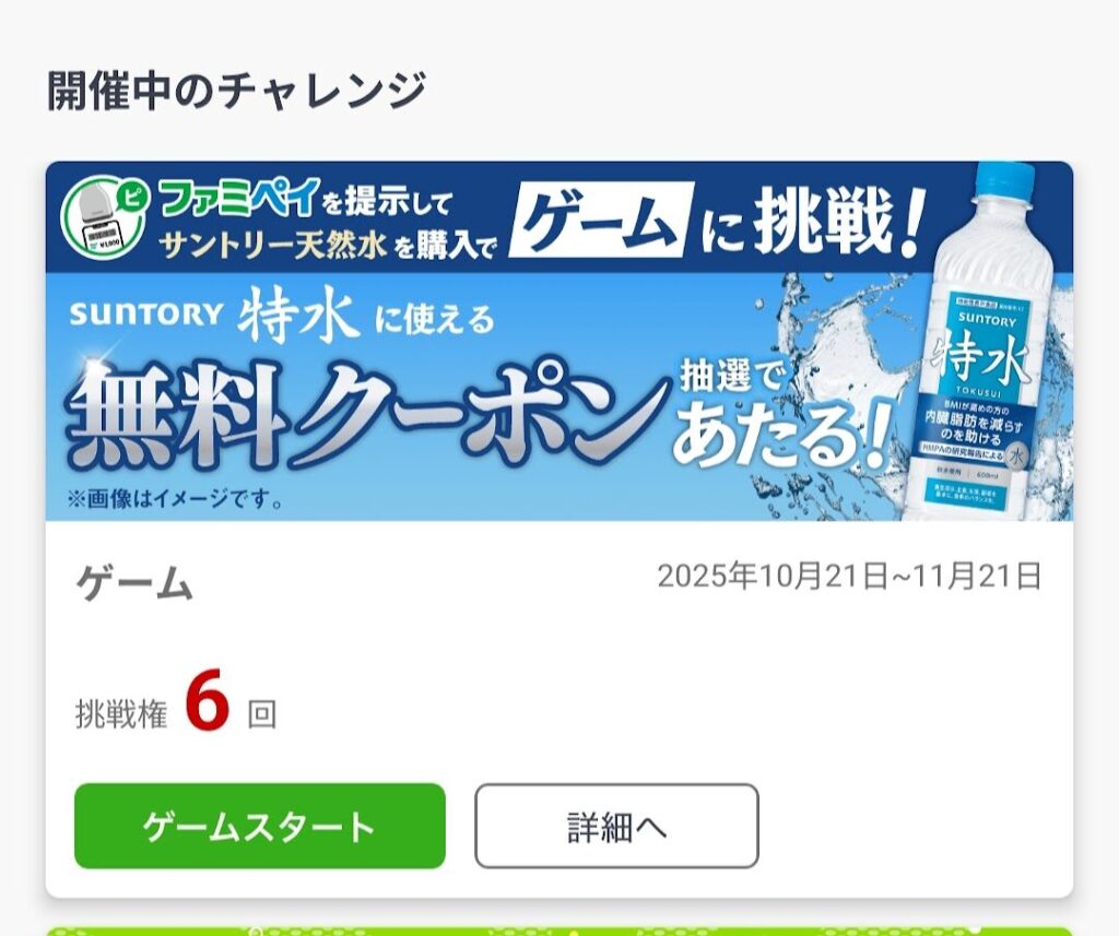 さらにファミペイアプリで、特水がもらえるルーレット開催中!