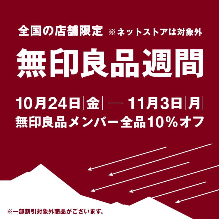 以前なら店舗に取り寄せができたのですが、サイバー攻撃にあった影響で現在できないとのこと。今回はネットストアでの無印週間開催もしていません!