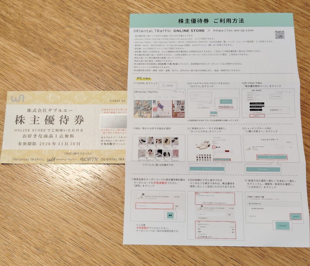 優待内容が変更になり、100株保有の場合7,000円の優待券がもらえます。こちらを使うには1万円分の購入が必要になります。