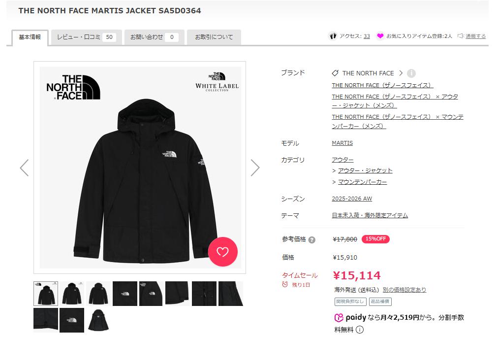 クーポンを利用してノースフェイスのアウターを注文しました。