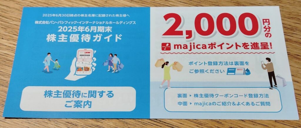 ドン・キホーテなどで使える「majicaポイント2,000円分」が届きました!
