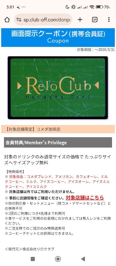 アイスコーヒーは、リロクラブで無料サイズUP!