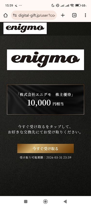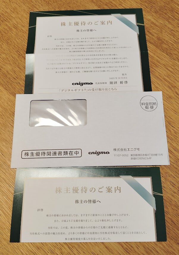 初取得の「エニグモ」から優待が到着!今年の7月から新設された優待です。