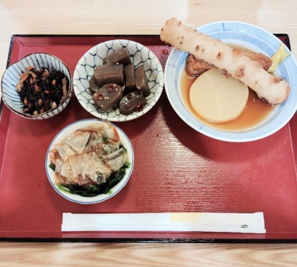 別の日の夕食は、おでん・ピリ辛こんにゃく・ほうれん草・ひじきの煮物!