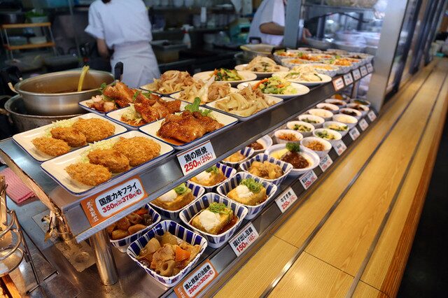 こちらのお店は、好きな料理を自分で選んで取っていく定食屋さんのスタイルです(^^)