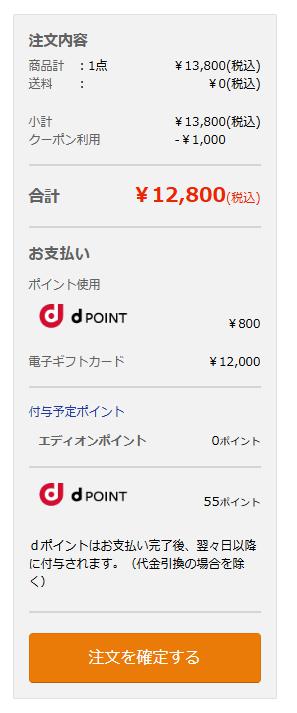 エディオン公式通販で10,000円分のお買い物をすると、50円分のポイントが貰えます。