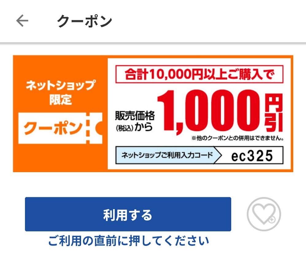 パソコンから購入する場合は、クーポンコードを入力すると使えます。