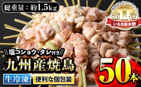 ☆高評価4.7☆<生冷凍>九州産 焼き鳥 5種 50本 約1.5kg